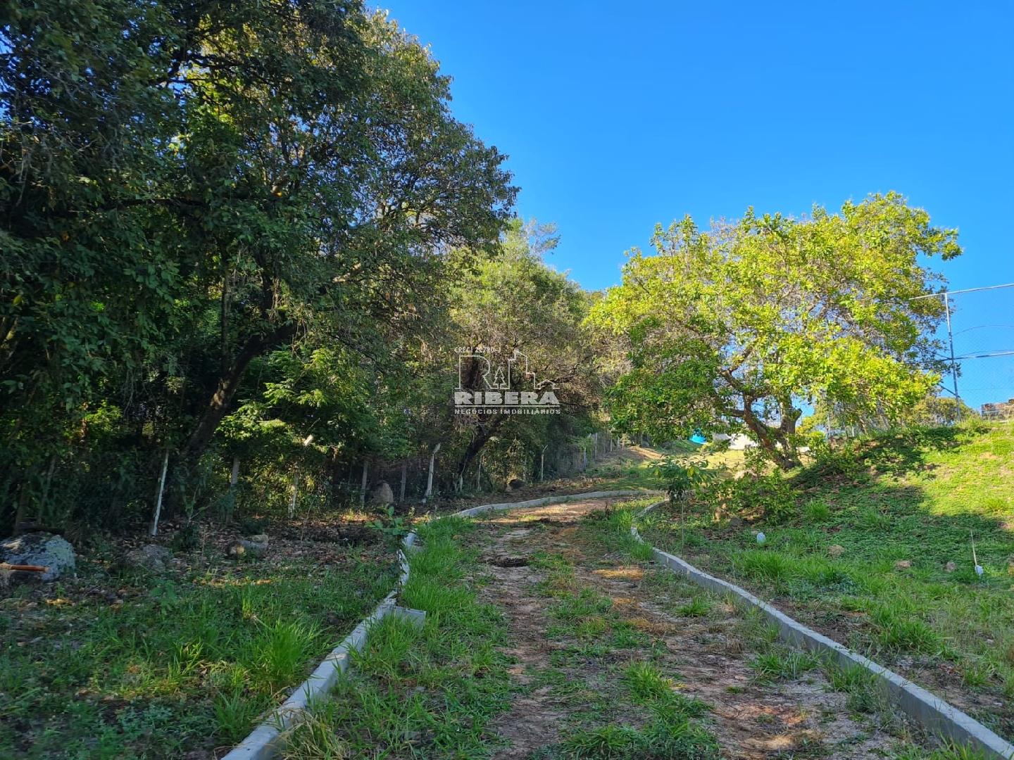 O terreno possui topografia acidentada, com parte plana e aclive predominante, oferecendo boa visibilidade e potencial construtivo para diversos tipos de projetos.