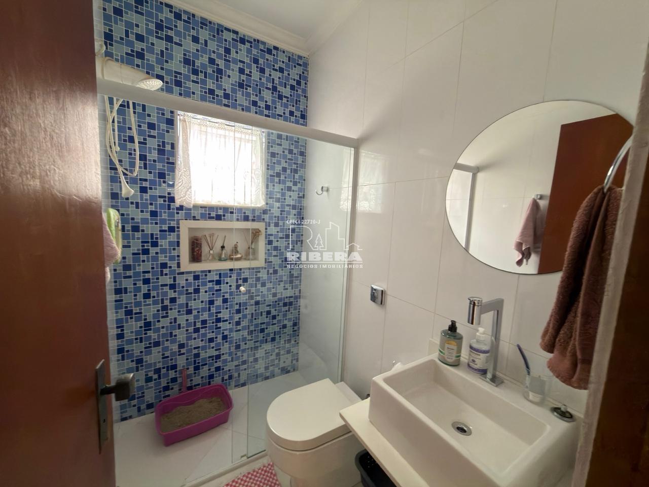 O imóvel conta com 3 dormitórios, sendo 1 suíte, sala de estar e sala de TV, além de sala de jantar integrada. A cozinha é funcional e bem distribuída. Dispõe ainda de 1 banheiro social e 1 lavabo.