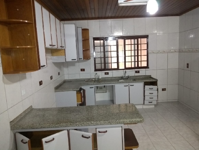 Cozinha espaçosa com balcão, armários e gabinete