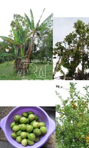 área de lazer com gramado, pomar, área cercada para criação e área plana para