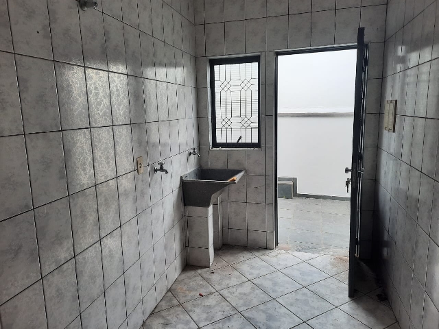 Quintal com parte coberta com pia e gabinete