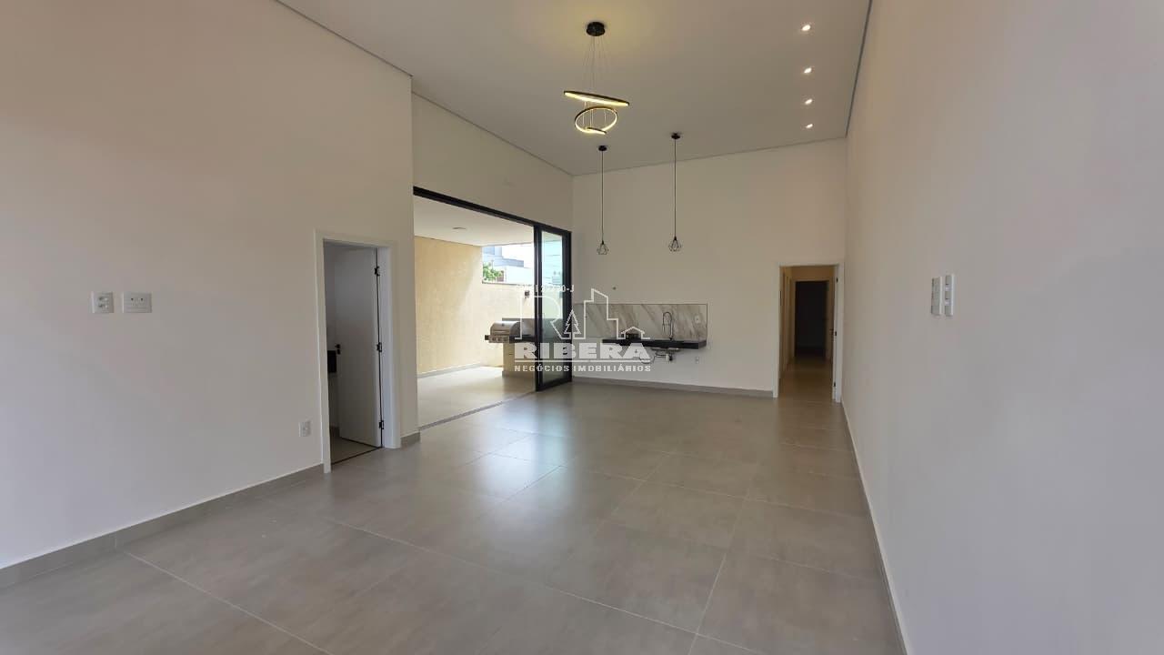 Oportunidade em Sorocaba: casa térrea no condomínio Villagio Wanel, com 140 m² em terreno de 200 m². Possui 3 dormitórios, sendo uma 1 suíte, lavabo, sala com pé direito duplo, cozinha integrada e espaço gourmet com churrasqueira a gás. Conta com acabamento de alto padrão, luminárias em LED, cubas esculpidas, esquadrias pretas, infraestrutura para ar-condicionado e aquecimento solar, além de garagem para dois carros e área gramada. Localizada em região valorizada, próxima a escolas, mercados, academias e grandes redes. Agende sua visita e conheça de perto.