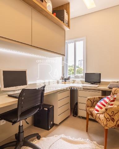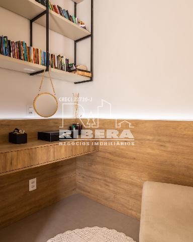 Um escritório bem iluminado e confortável proporciona um espaço tranquilo para trabalhar em casa, enquanto a área de serviço, discreta e funcional, facilita as tarefas domésticas do dia a dia.