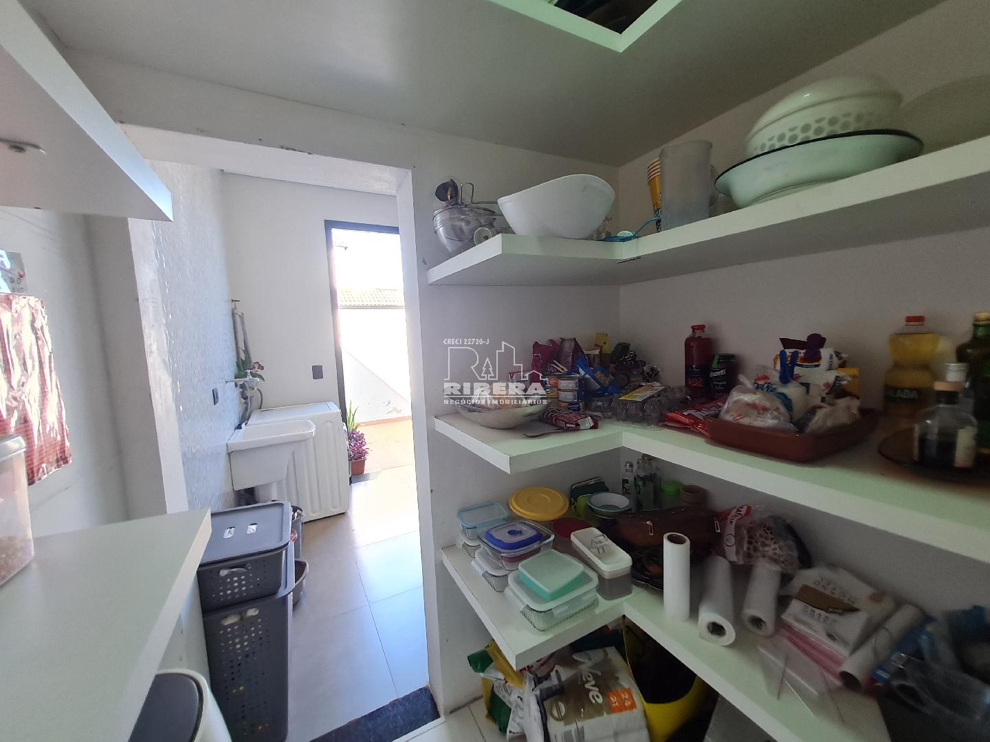 Cozinha Planejada: Moderna e funcional, com despensa equipada com prateleiras.