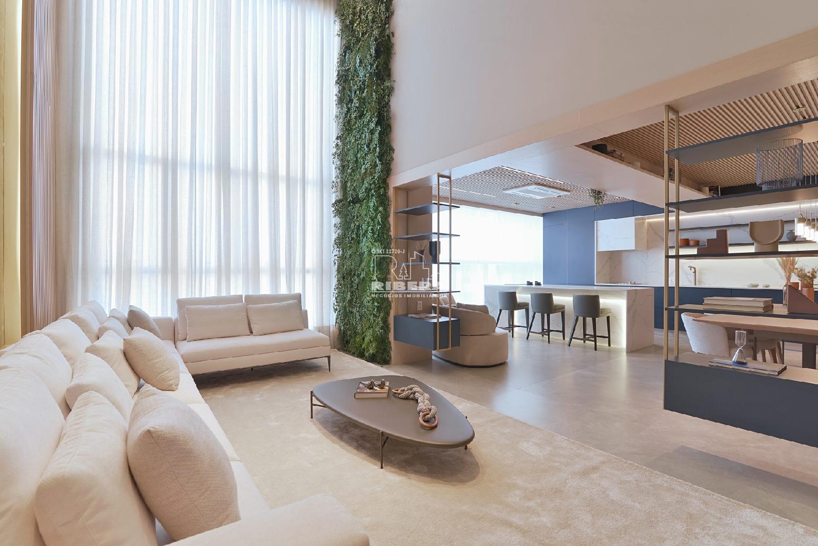 Apartamento de alto padrão em torre única, com living amplo e pé-direito duplo, garantindo excelente iluminação natural e sofisticação. Planta bem distribuída, com salas integradas, home theater, varanda gourmet, hall social privativo e lavabo.